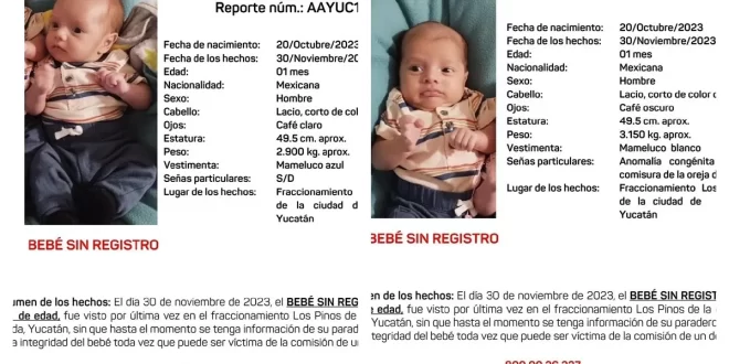 Datos de los bebés desaparecidos en Los Pinos, Mérida
