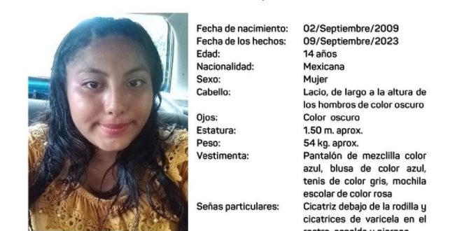 De acuerdo con el reporte número AAYUC108/2023, la adolescente fue vista por última vez el 9 de septiembre al salir de su domicilio en la localidad de San Isidro, del municipio de Tizimín, sin que hasta el momento se tenga información de su paradero.
