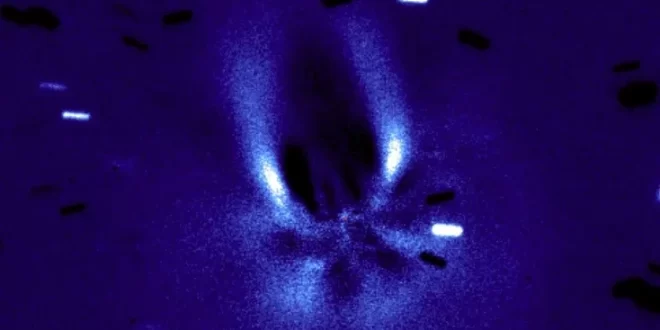 Es probable que el gas que sale esté parcialmente obstruido por alguna deformación que sale desde el núcleo.