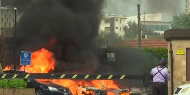 Los atacantes pasaron el control de vehículos de acceso al complejo disparando a los guardas y lanzaron explosivos contra varios vehículos que se encontraban en el estacionamiento, según dijo la Policía al diario local Daily Nation.