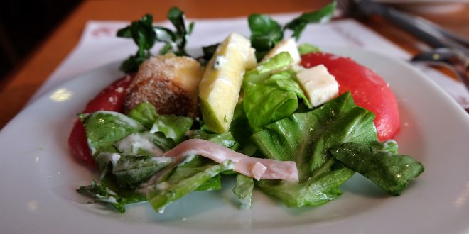 ½ aguacate firme ½ mango 2 hojas de lechuga 2 zanahorias ½ taza de lentejas cocidas ¼ pieza de cebolla morada Germen de alfalfa Aderezo: Vinagre balsámico al gusto, una cucharada de aceite de oliva |