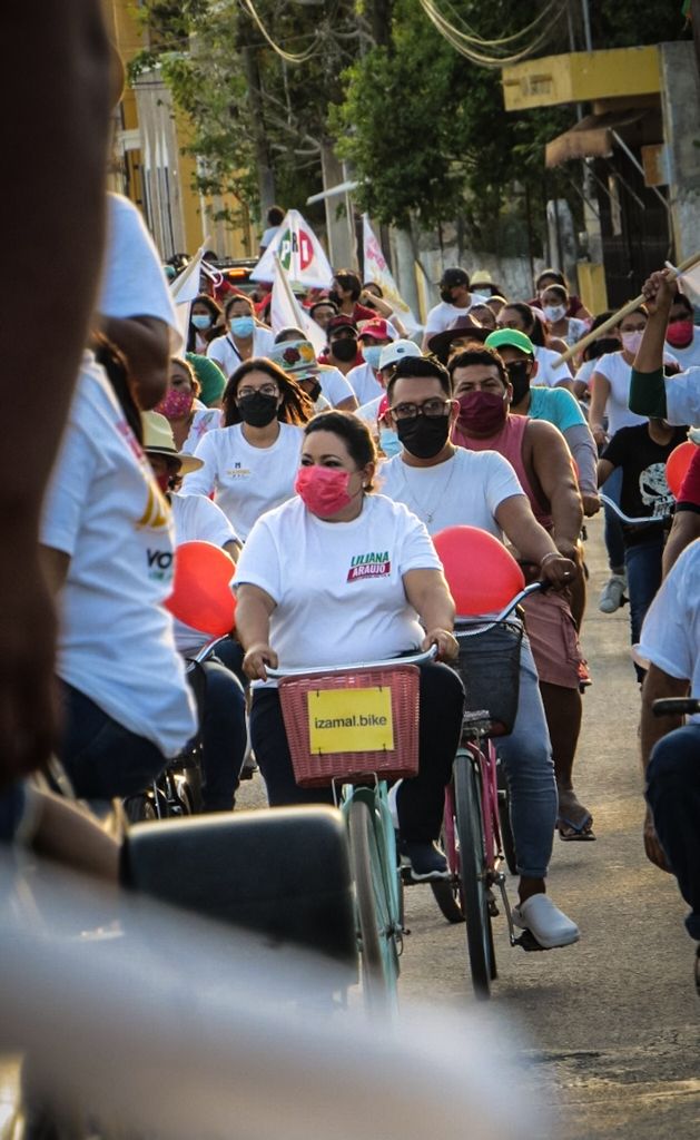 Para finalizar la jornada, Liliana Araujo visitó Izamal, donde participó en una rodada junto al candidato a presidente municipal, Warnel May y como ya es costumbre en ese municipio, la gente la recibió en medio de un ambiente de fiesta y alegría para manifestar su total apoyo al proyecto que encabeza.