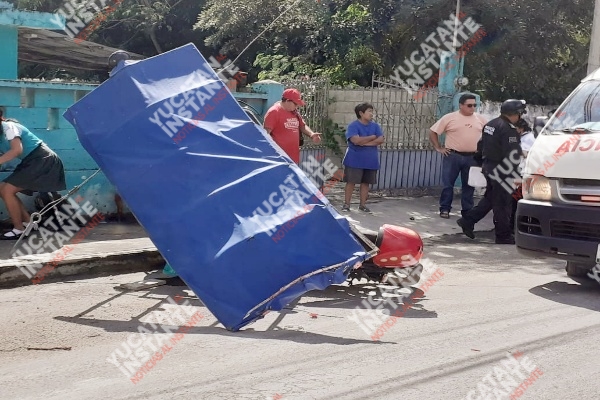 Sin embargo al transitar sobre la calle 26 con 17 de la colonia Itzimná, se le “amarró” una llanta provocando que volcará con el tricimoto. Ante el porrazo con los fierros de la estructura alcanzó a golpearse la cabeza la muchacha A.U., de 17 años. Siendo atendida minutos después por paramédicos de la Policía Municipal para trasladarla al IMSS de esta cabecera municipal.