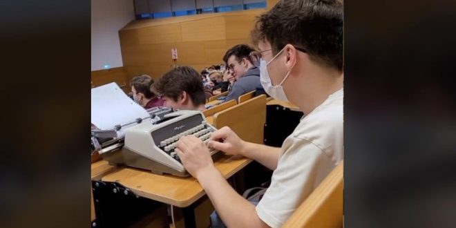 Alumno lleva máquina de escribir ante negativa de profesor de utilizar laptops en clase
