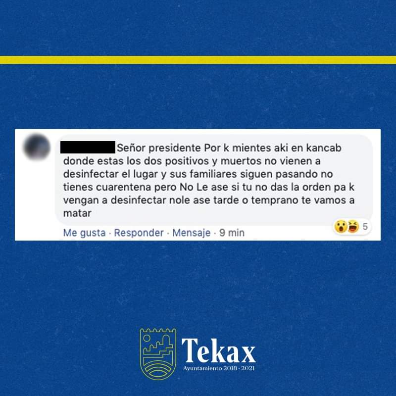 TEKAX, Yuc., 25 de abril 2020. – El alcalde de este municipio, Diego Ávila Romero denunció que fue amenazado de muerte este día, por lo que decidió levantar una denuncia ante la Fiscalía General del Estado de Yucatán contra quién resulte culpable.