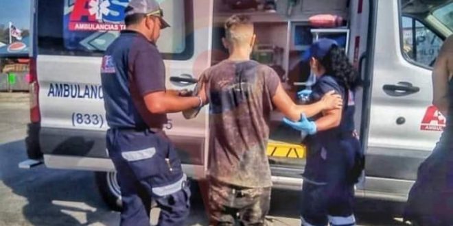 Pimentel, originario de la colonia del Pueblo en Tampico, despertó cubierto de arena, todavía en estado etílico por lo que tuvo que ser atendido por los servicios de emergencia.