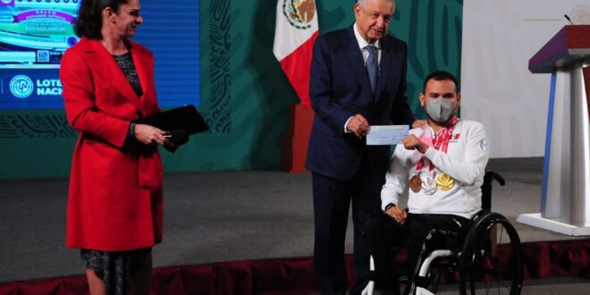 Informó que los fondos para la entrega de estímulos a los deportistas que representaron a México en los Juegos Olímpicos y Juegos Paralímpicos se obtuvieron de la venta de cachitos de la Lotería Nacional.