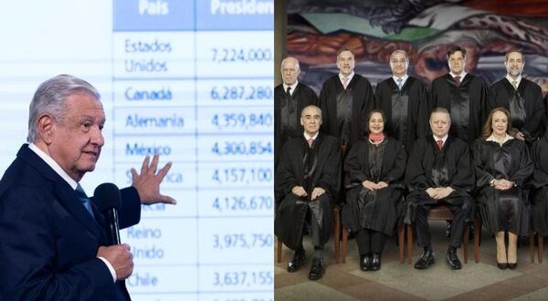 El presidente presentó una lista de 40 “privilegios” de los ministros de la SCJN y entre otras cosas dijo que tienen primas vacacionales de 95 mil pesos y un fondo para comer en restaurantes de lujo por 723,690.24 pesos al año.