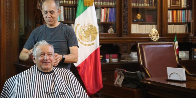 En la imagen el mandatario aparece sentado en su oficina de Palacio Nacional mientras le cortan el cabello; la publicación venía acompañada con la leyenda: