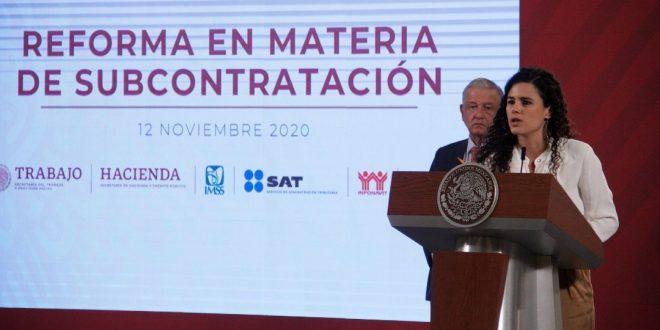 Acompañando al mandatario mexicano, Luisa María Alcalde, secretaria del Trabajo y Previsión Social, destacó que existen 4 millones 600 mil trabajadores bajo el esquema de subcontratación laboral, el cual afectará en sus pensiones porque terminarán jubilándose con salarios muy por debajo de lo que actualmente ganan.
