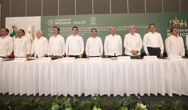 Mérida, Yucatán a 14 de diciembre (Yucatán al Instante). Ensu primera visita oficial como presidente de México, Andrés Manuel López Obrador, encabezó este día la firma de acuerdo del Plan Nacional de Salud, que contempla en atender a las personas que no cuentan con seguridad social y se encuentran en vulnerabilidad económica.
