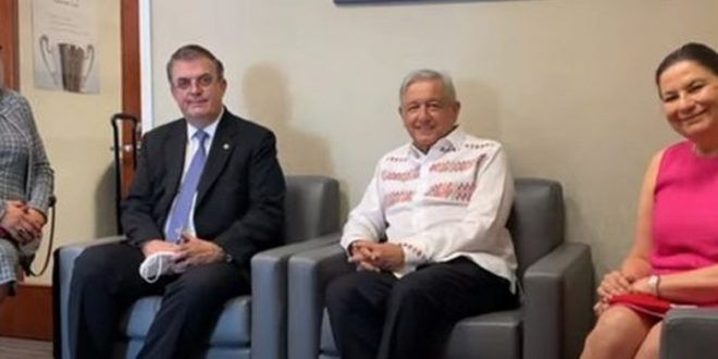 El presidente estaba acompañado por el secretario de Relaciones Exteriores, Marcelo Ebrard; la secretaria de Economía, Graciela Márquez, y Martha Bárcena, embajadora de México en Estados Unidos.