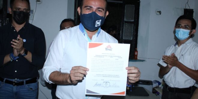 El ahora alcalde electo, acudió con sus padres; Lucy Elena Polanco Camelo y Buenaventura Cisneros Polanco, así como miembros de su planilla, amigos y sobre todo simpatizantes, resguardando debidamente el protocolo sanitario para evitar contagios por Coronavirus, a la sede oficial del IEPAC en el municipio, ubicado en céntrica calle de la ciudad.