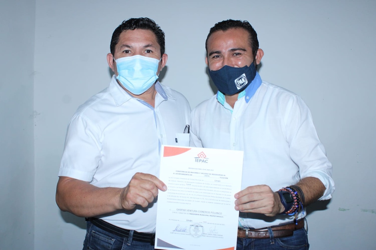 Gaspar Ventura Cisneros Polanco hoy Presidente Municipal electo de Umán obtuvo mil 622 votos de diferencia sobre su rival más cercano. Un total de ocho mil 357 sufragios. Una victoria contundente e irreversible.