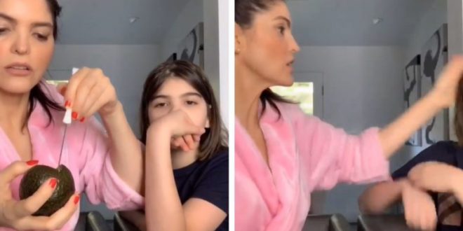 Resulta que la intérprete de ‘Lo busqué’ se encontraba grabando un video junto a Chema mientras cortaba un aguacate, pero de pronto apareció detrás de ellos Jerónimo quien tropezó y terminó en el suelo.