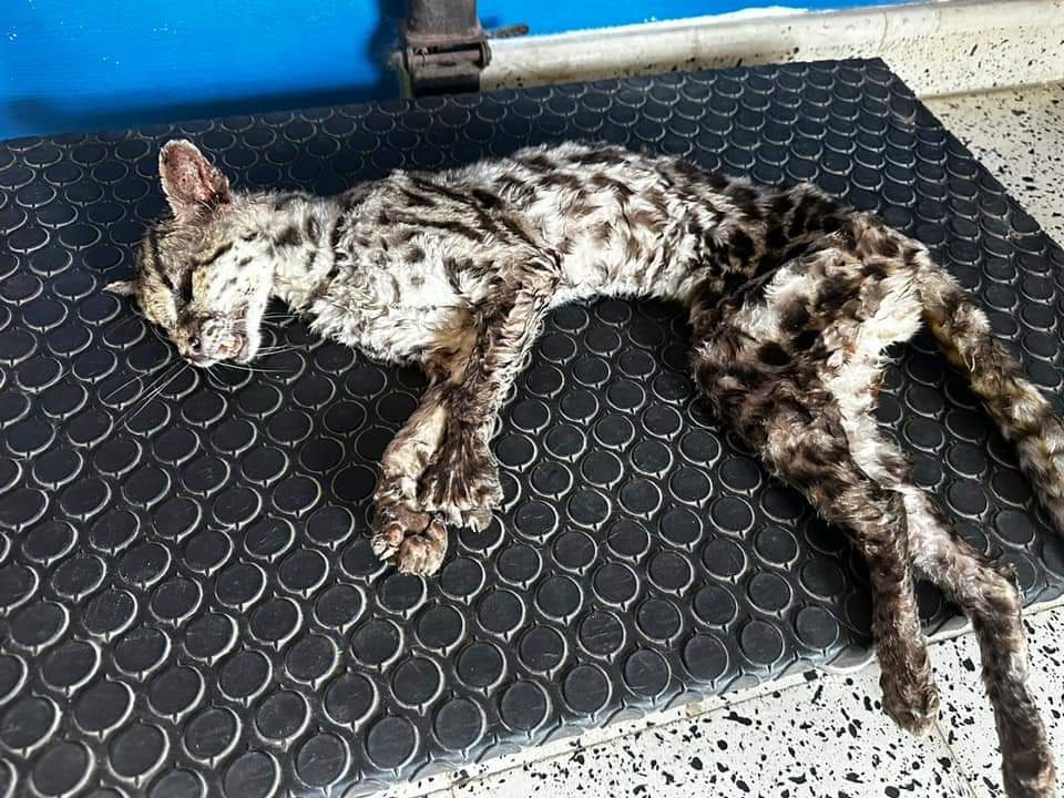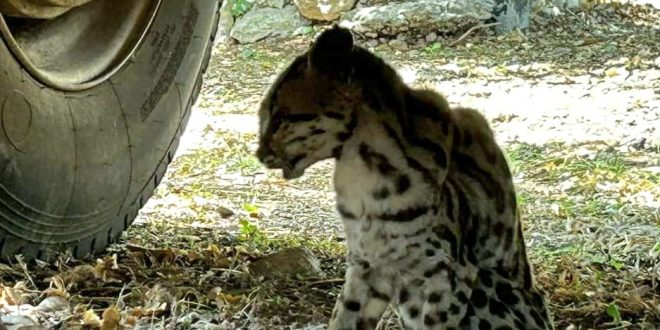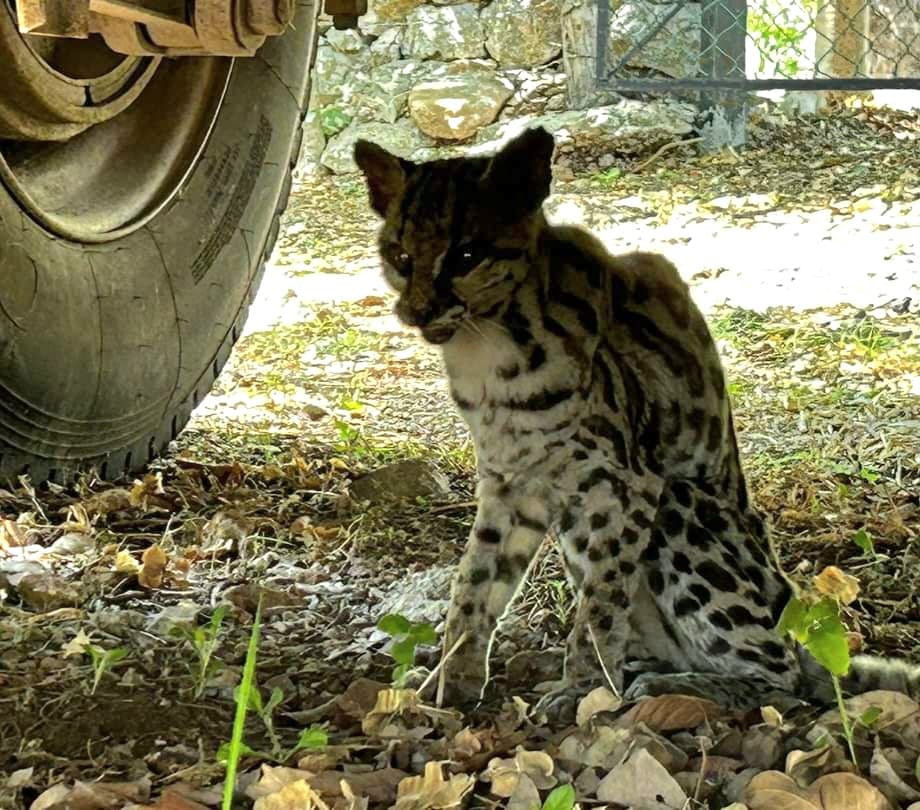 Umán, Yuc., a 25 de mayo.- El usuario umanense Jairo Chi compartió fotos y un vídeo de un tigrillo ayer en la tarde, donde se aproxima en los terrenos de su taller; cercano a la comisaría de Tebec en estado sediento, pues debido a las altas temperaturas que han roto récord en la entidad, los animalitos escapan de su hábitat para encontar un ‘oasis’ en el que puedan calmar la sed.