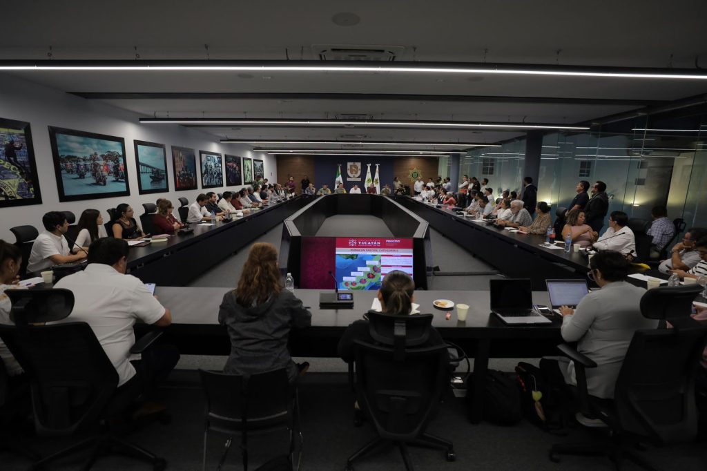 Previamente en la sesión permanente del Comité de Emergencia del Consejo Estatal de Protección Civil, se realizó una revisión de las acciones que están realizando en cada dependencia para apoyar a la población, así como las disposiciones previstas tras el paso del huracán por tierras yucatecas.