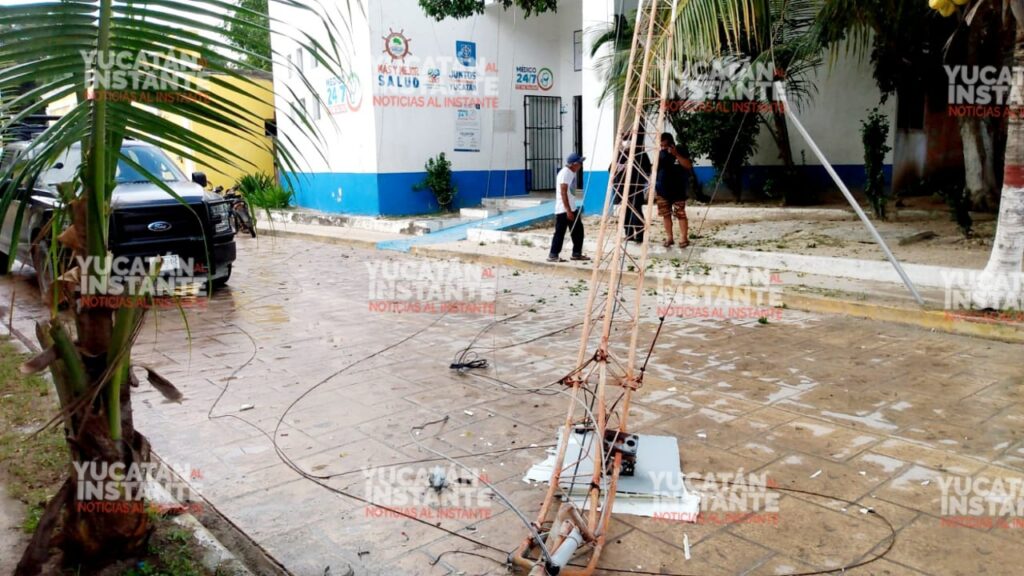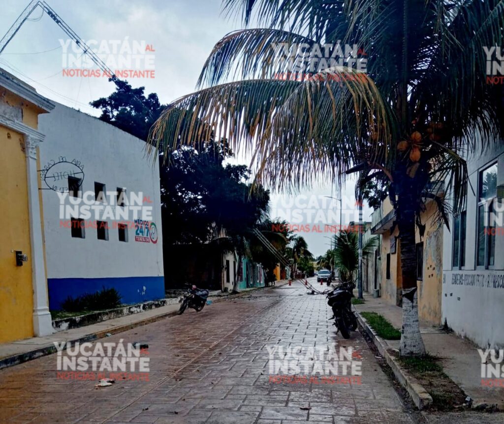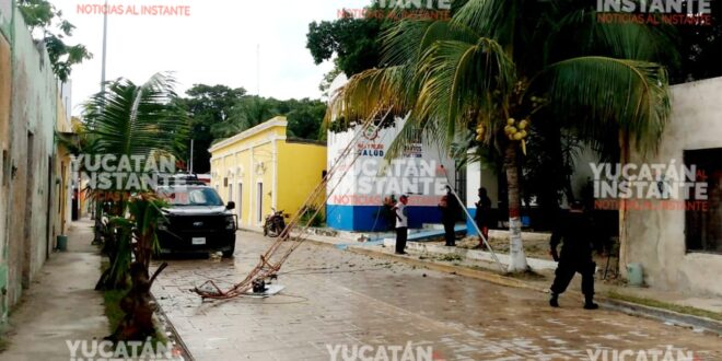 Celestún, Yuc., 28 de octubre.- El frente frío No. 6 que ingreso este mediodía en Celestún hizo colapsar una antena de 25 metros, y justo cuando se desplomaba una joven mujer que conducía su motocicleta y llevando a su hijita, así como a otro pariente, hizo una maniobra defensiva, pero acabó derrapando en la calle 12 por 13 y 15 de este municipio costero.