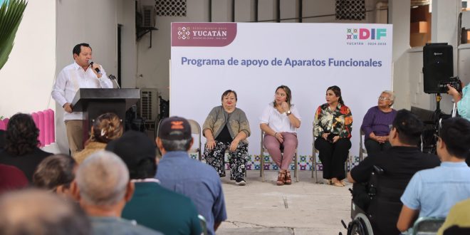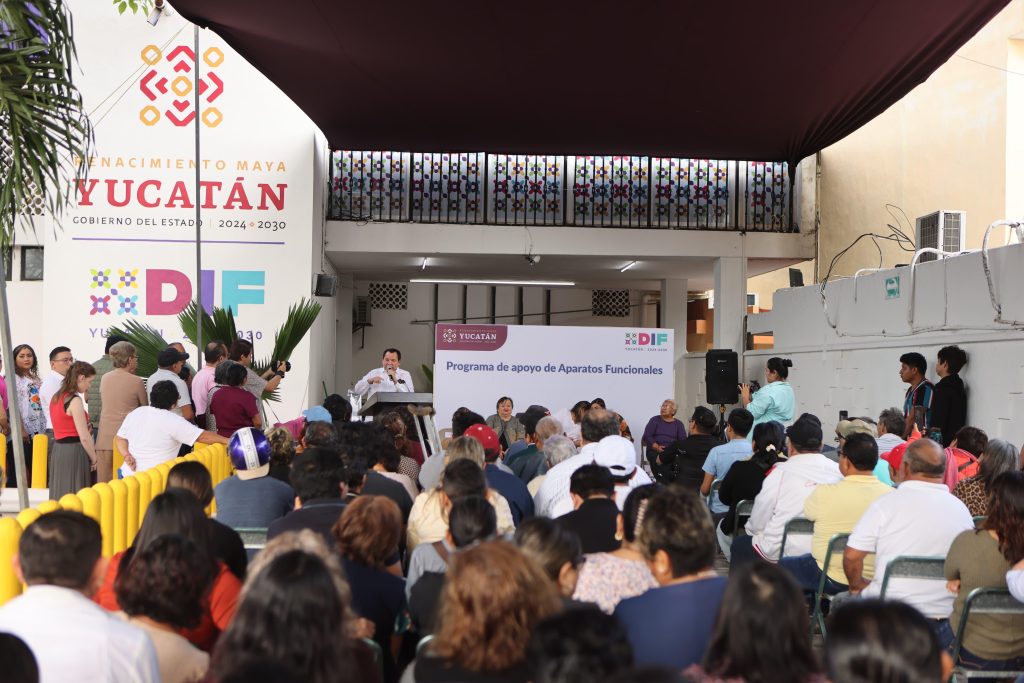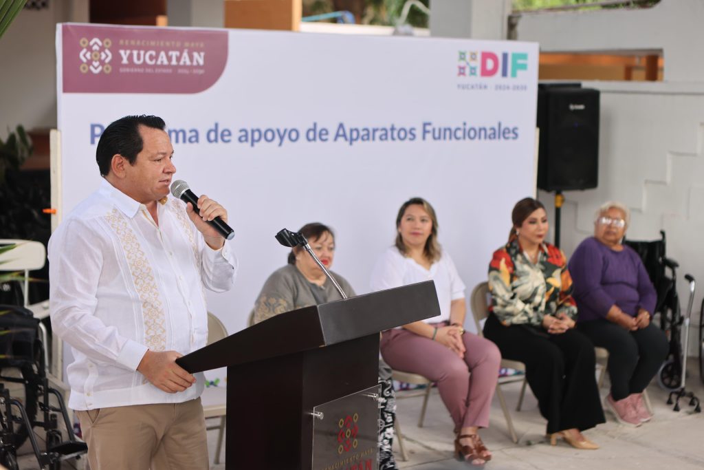 Díaz Mena asistió a las oficinas centrales del Sistema para el Desarrollo Integral de la Familia (DIF) Yucatán para hacer entrega de 48 aparatos de movilidad a personas con discapacidad. Acompañado de la Presidenta Honoraria del DIF Yucatán, su esposa, la maestra Wendy Méndez Naal, y de la directora estatal del DIF, Shirley Castillo, el Gobernador destacó la importancia de la labor realizada por esta noble institución.