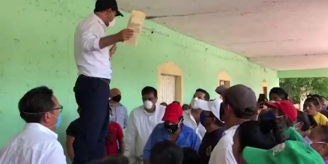 Yaxcabá, Yucatán a 9 de Junio de 2020. – En Kancabdzonot, comisaría del municipio de Yaxcabá, y después de escuchar la necesidades de los pobladores, el Gobernador Mauricio Vila Dosal anunció apoyos de semillas de maíz e insumos para que los agricultores vuelvan a sembrar, toda vez que en esta zona el nivel del agua ya descendió, así como ayudas para que los artesanos reanuden sus actividades.