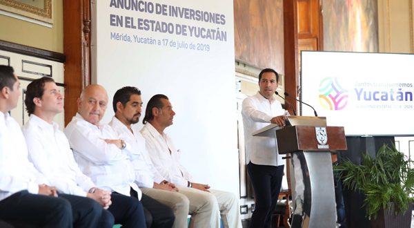 Mérida, Yucatán, 17 de julio de 2019.- Un total de 9 empresas de capital local, nacional e internacional dedicadas a los sectores inmobiliario, agroindustrial, hotelero, médico y especializado en logística de carga, sistemas de ventilación, entre otros, realizarán en Yucatán una inversión de 18,169 millones de pesos, cifra 4 veces mayor a la de 5,500 millones de pesos presentada en enero pasado, para la generación de más 6,440 empleos directos y 19,420 indirectos, con lo que ya se logró acumular en los primeros 9 meses de esta administración una certeza de inversión por más de 23,700 millones de pesos y la creación de 17,010 fuentes de trabajo directas y 54,120 indirectas, anunció el Gobernador Mauricio Vila Dosal.