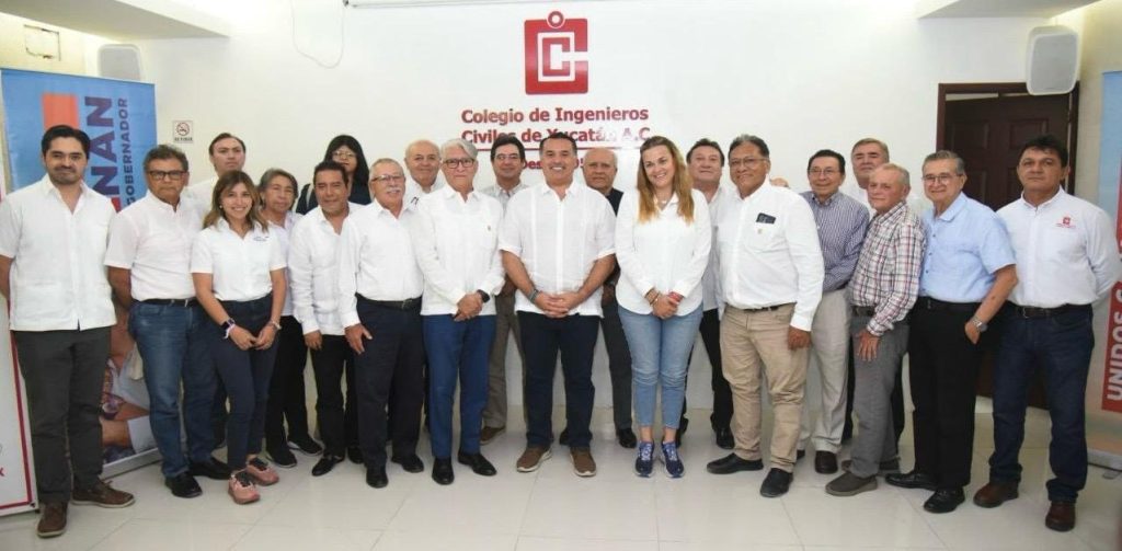 Mérida Yucatán a 24 de abril de 2024.- La construcción de proyectos de infraestructura en el interior del estado, un nuevo rastro TIF, mejorar el espacio público de los municipios y comisarías, la implementación de más energía renovable, la creación de la Comisión Estatal de Aguas y de la Agencia para la Competitividad y el Crecimiento Económico, Industrial y sostenible del estado, fueron algunos de los temas que el candidato común a la gubernatura de Yucatán por el PAN, PRI y Nueva Alianza, expuso como parte de sus proyectos de gobierno ante los integrantes del Colegio de Ingenieros de Yucatán, a quienes aseguró que todas estas acciones se desarrollarán de la mano y orientación de cuerpos colegiados y expertos.