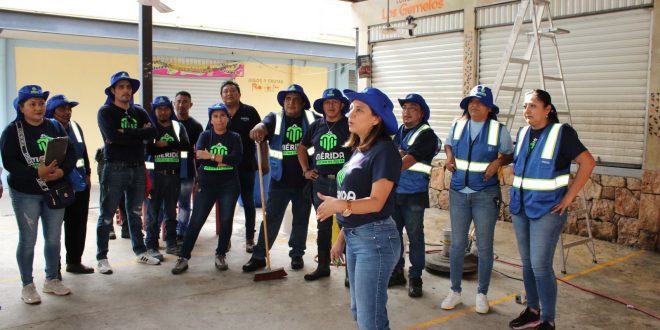 Mérida, Yucatán a 29 de Mayo de 2025.- La subdirectora de mercados públicos, Dafne López Osorio, informó que como parte del programa de concientización “El Mercado es tuyo, cuídalo”, se ha puesto en marcha una brigada especial de limpieza que estará llegando a cada uno de los mercados entre los que se encuentran el Lucas de Gálvez y San Benito en el centro; así como los de la periferia como el de Cholul, Caucel, Santa Ana, Alemán y Chembech entre otros.