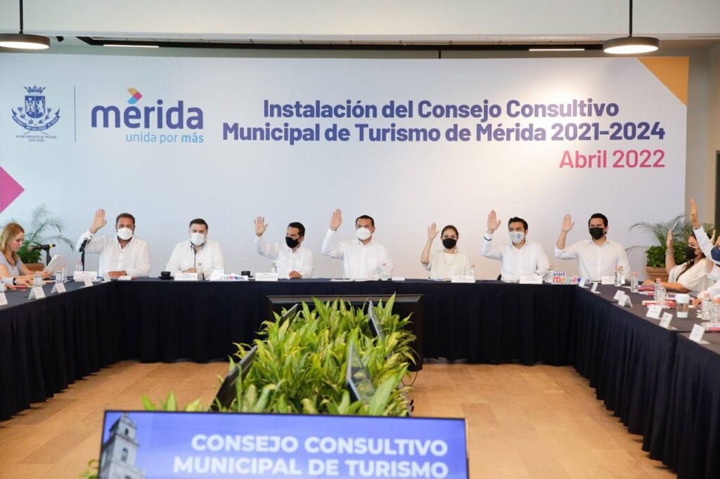 Mérida, Yucatán, 11 abril 2022.- Con el fin de trabajar en conjunto para lograr la reactivación económica del sector turístico y promocionar a Mérida como destino de renombre regional, nacional e internacional, el alcalde Renán Barrera Concha instaló el Consejo Consultivo Municipal de Turismo 2021-2024 de la mano de la sociedad civil, empresarios del ramo hotelero y restaurantero, así como también de representantes de universidades, para potenciar la creatividad en el diseño de políticas públicas de este sector.