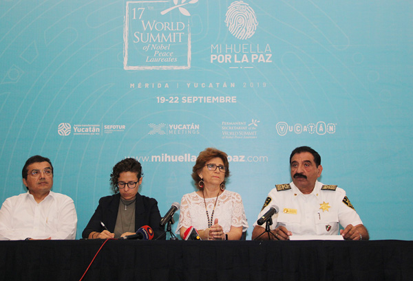 Mérida, Yucatán, 6 de septiembre de 2019.- Para asegurar que la 17 Edición de la Cumbre Mundial de los Premios Nobel de la Paz transcurra en completo orden y tranquilidad, se desplegará un operativo vial y de seguridad en coordinación con los tres niveles de Gobierno, a fin de garantizar el disfrute seguro de la gran variedad de eventos programados para este encuentro a realizarse del 19 al 22 de septiembre en Mérida.