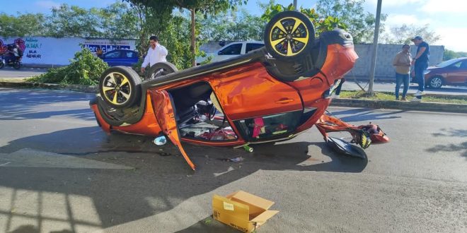 Mérida, Yuc., 18 diciembre 2024. – Cuantiosos daños materiales, dejo una aparatosa volcadura en el cruce de la avenida Mérida 2000 con la calle 132 de la colonia El porvenir.