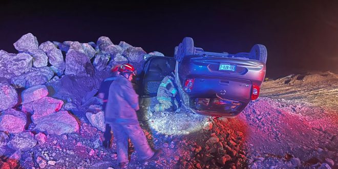 Esto causó que se saliera de la cinta asfáltica, recorriendo varios metros dentro de la maleza hasta terminar sobre un gran montículo de piedras y tierra, así como con el toldo del auto en la tierra.