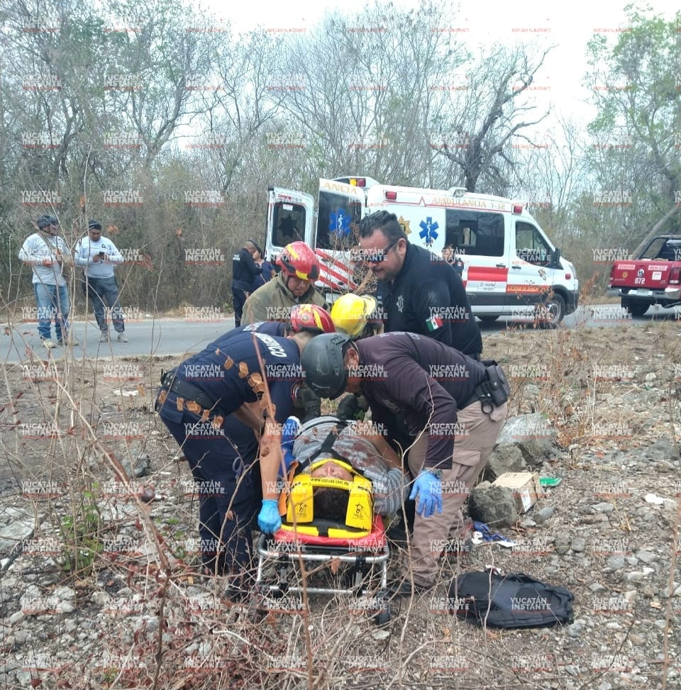 Aparatosa volcadura en la Umán-Oxholón; 3 lesionados entre ellos el director de Protección Civil de Umán