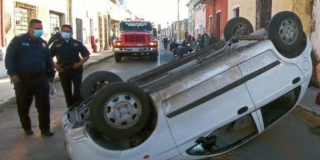 MÉRIDA, Yuc., 03 de diciembre 2020.- Una conductora resultó lesionada luego de volcar con su vehículo en el Centro de Mérida ayer por la mañana.