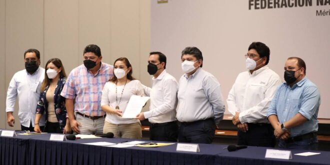 -El Gobernador Mauricio Vila Dosal sostuvo un encuentro con alcaldes integrantes de la Federación Nacional de Municipios de México (Fenamm) en el estado, en el que se acordó continuar trabajando con voluntad política y coordinadamente en favor del desarrollo de los municipios.