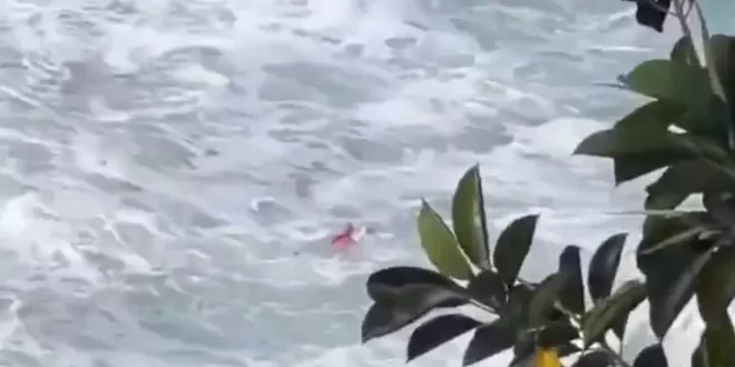 El incidente ocurrió cuando el bañista, cuya identidad no ha sido revelada, fue atrapado por una fuerte corriente mientras nadaba en aguas profundas. Las imágenes muestran cómo lucha por mantenerse a flote entre espuma y oleaje, hasta que el guardavidas se lanza con un chaleco salvavidas para alcanzarlo. La maniobra fue complicada por el mar agitado y el riesgo de ser golpeados contra las rocas.