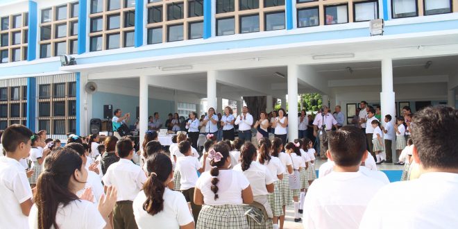 De manera simbólica, la entrega se hizo en la primaria “Filemón Villafaña Farfán”, donde la regidora Guadalupe Ivone Rassam Jiménez, de Desarrollo y Asistencia Social, en representación del alcalde Julián Zacarías Curi, agradeció el apoyo por parte del gobernador del Estado, Mauricio Vila Dosal así como de la titular de la Segey, Loreto Villanueva Trujillo, y resaltó cuán importante es esta asistencia para los padres de familia.