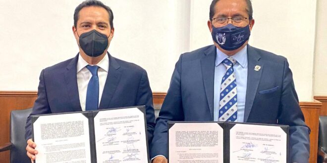 En el documento firmado por Vila Dosal y Solís Ramírez, se contempla la promoción de los planes de becas y apoyos económicos que se otorguen por parte del Gobierno del Estado para apoyar la preparación de los alumnos y continuar estrechando lazos entre la entidad y esta Institución.