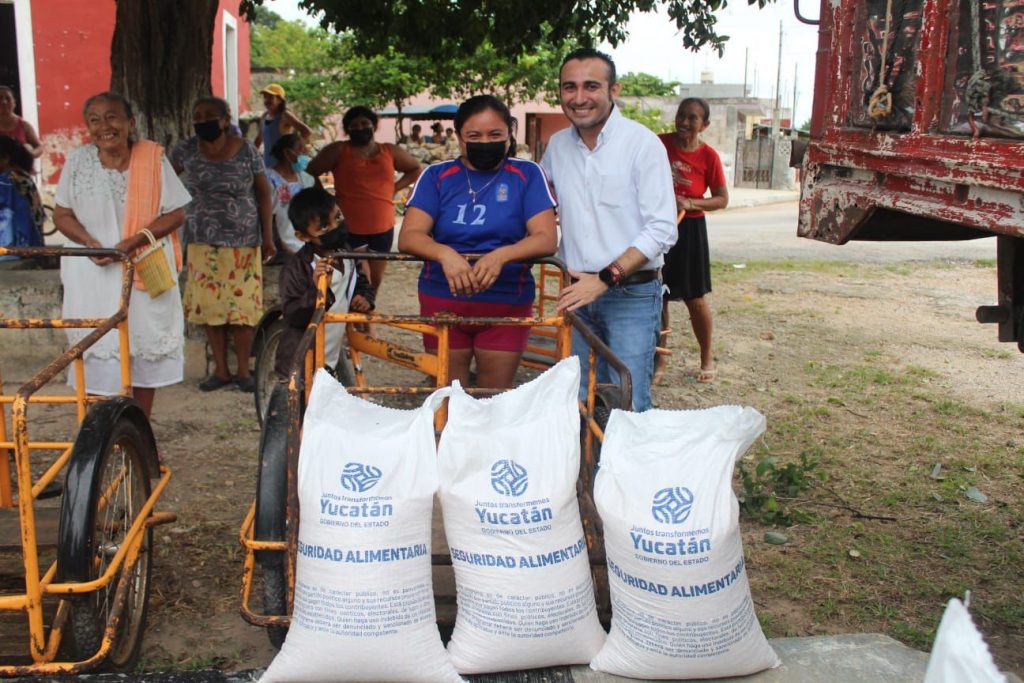 Trabajando de manera coordinada con el Gobernador del Estado de Yucatán, Mauricio Vila Dosal el presidente municipal de Umán, Dr. Gaspar Ventura Cisneros Polanco hizo entrega de un saco de maíz por familia beneficiando a la cabecera Municipal y las 17 comisarias.