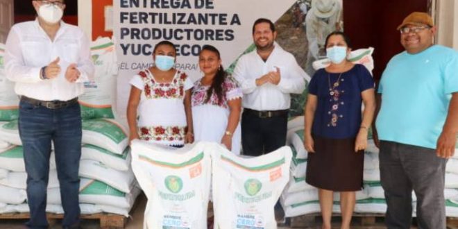 -Ahora el apoyo de fertilizantes se recibió en los municipios de Tahdziú, Peto y Oxkutzcab, como parte del beneficio que se brinda a más de 10,000 productores agrícolas de 25 municipios del estado.