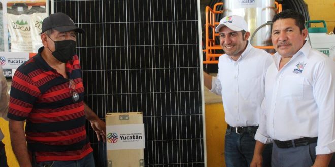 El presidente municipal de Umán Dr.Gaspar Ventura Cisneros Polanco junto al Subsecretario de Desarrollo Rural, continúan juntos, sumando esfuerzos y haciendo equipo con las y los umanenses logrando el reparto de productos como triciclos , alambres, paneles solares, tinacos, bombas, carretillas, entre muchos otros.