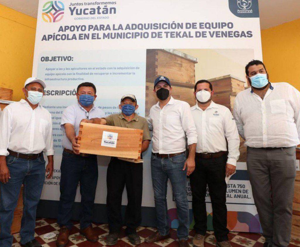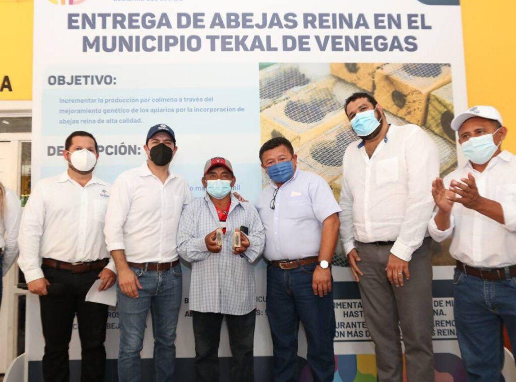 Para impulsar su producción, Vila Dosal también supervisó el inicio del plan Apoyo para la Adquisición de Equipo Apícola, con el cual se entrega un total de 25,000 cajas de abejas completas, para incrementar la infraestructura productiva, en beneficio de 5,000 hombres y mujeres dedicadas a esta labor.