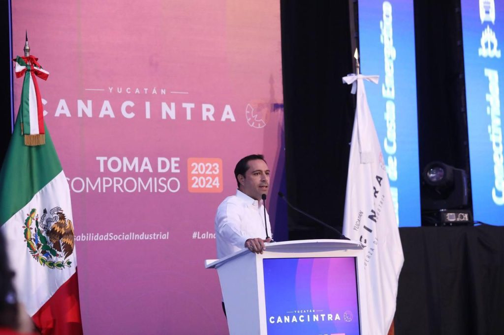 Mérida, Yucatán, 19 de abril de 2023.- Tenemos que aprovechar juntos el gran momento que vive Yucatán para sentar las bases de la infraestructura que necesita para que este crecimiento se vuelva sostenible en los próximos 30 años, afirmó el Gobernador Mauricio Vila Dosal durante la ceremonia de toma de compromiso de la Cámara Nacional de la Industria de Transformación (Canacintra) delegación Yucatán para el periodo 2023-2024.