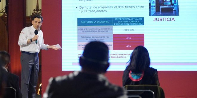 Precisó que la Organización Internacional del Trabajo (OIT) y la CEPAL han analizado de manera permanente la situación económica derivada coronavirus, quienes de acuerdo a un semáforo de actividades económicas indican que los sectores de alojamiento, servicios de comidas e inmobiliaria tienen una repercusión alta en su producción económica.