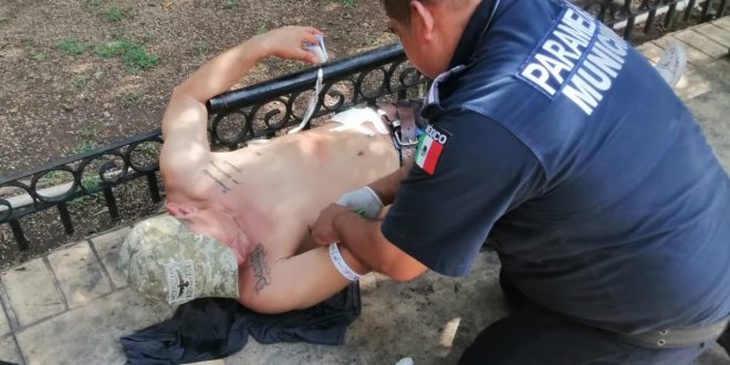 Mérida, Yucatán a 5 de julio de 2023.- Hoy a las 14:58 horas agentes de la Policía Municipal de Mérida asignados a la vigilancia del área de la Plaza Grande se percataron de una persona lesionada en el interior de la misma.