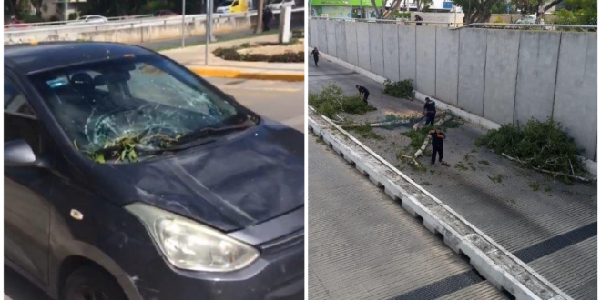 Las grandes ramas cayeron y alcanzaron a golpear al auto mencionado, además parte del árbol cayó al desnivel, propiciando el cierre del túnel por varios minutos.
