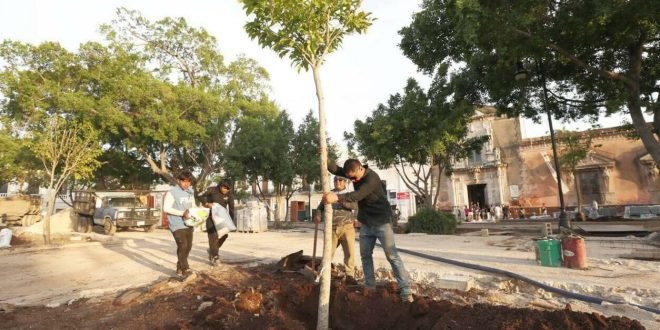 Los árboles de ramón, que fueron utilizados por los mayas como fuente de alimento por su alta calidad nutricional y su aporte para restaurar suelos degradados, serán colocados a lo largo y ancho de toda la Plaza Grande.
