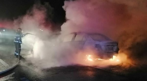 Umán, Yuc., 6 de octubre 2020.- Ardió completamente un vehículo Beat, presuntamente por una falla eléctrica cuando circulaba en la vía federal Mérida – Campeche la noche del pasado domingo.
