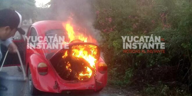 Ricardo Méndez (a) “Xux” iba a bordo de su escarabajo hacia Samahil para ir por su labores, sin embargo al entrar a esta comunidad kinchileña alrededor de las 7 de la mañana estalló algo dentro el motor. Entonces al bajarse Xux se percató de las primeras llamas, por lo que corrió a pedir ayuda a un vecino de enfrente, quien rápidamente le dio sus cubetas que tenía llenado, y ¡sobres! Al menos hay vocho para rato, exclamó Richi.
