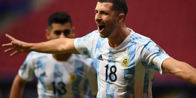 Apenas con 13 minutos en el reloj, una genialidad de Lionel Messi que Rodríguez terminó definiendo para abrir el marcador. El ataque de los dirigidos por Lionel Scaloni era incesante y por poco crecían la cuenta con el que pudo ser el segundo, otra vez Messi con una buena ejecución personal tras una serie de burlas a la defensa para servir a Nahuel Molina, quien forzó a Fernando Muslera a mandar la pelota al tiro de esquina.