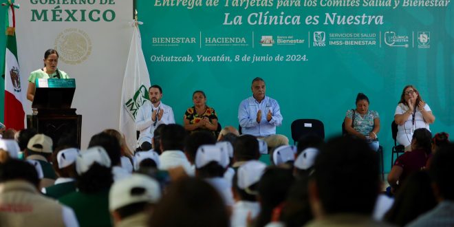 MÉRIDA, Yuc., 08 de junio 2024.- La delegación Bienestar Yucatán encabezada por la licenciada Silvia Gutierrez, informó que este fin de semana en su gira de trabajo la Secretaria Ariadna Montiel Reyes, efectuó entrega de las tarjetas del programa “La Clínica es Nuestra” cuyos recursos serán aplicados en la reconstrucción del sistema de salud rural en el estado.